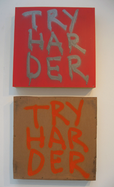 spray paint, cardboard, nails, wood