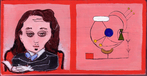 Roberta Fallon and Libby Rosof Flaubert & Flow Chart, from the Couples we love Series acrylic on panel, double-sided 4" x 8" x 3/4" 2007