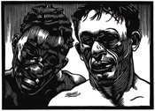 Every linocut starts here - with a blank piece of linoleum and a pencil. With any type of original print, the artist creates a matrix - a printing element - which takes ink and transfers it to paper. The resulting print is the original artwork - the matrix is simply the vehicle with which the artwork is made. This sequence of photos demonstrates the creating of the matrix - the carved linoleum - and the printing of the artwork.